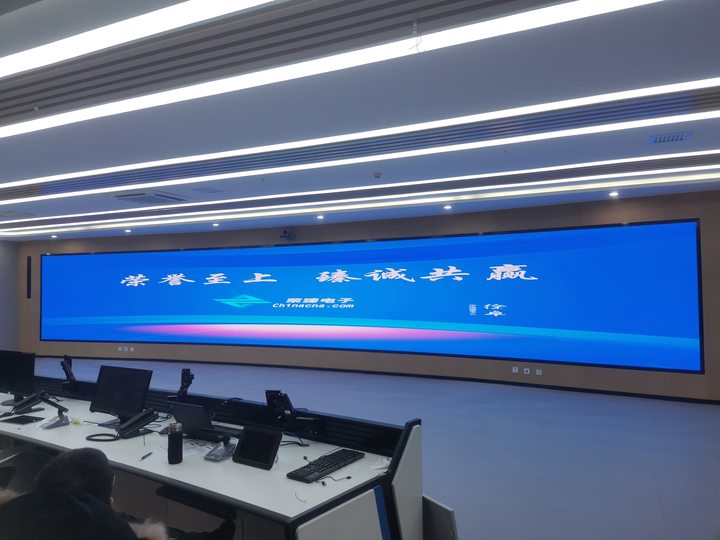 本項目案例是我公司(榮臻電子)在東北遼寧某電力公司安裝的一個P1.875小間距全彩顯示屏項目,項目的具體展示效果如下: